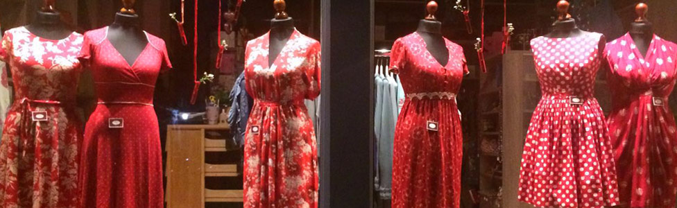Klassische Schnitte und Retro-Prints, so zum Beispiel ausgefallene 40er und 50er Jahre Stil Kleider in A-Form mit süßen Prints. Aber auch klassisch gepunktet mit großen Polka Dots oder Rosen mit keinen Pin-Dots. Die Kleider und Tops sind aus 100% Baumwolle und garantieren so ein angenehmes Tragegefühl und Langlebigkeit. Ein absolutes Must-Have für jede stilbewusste Dame, die großen Wert auf top Qualität und Individualität legt.